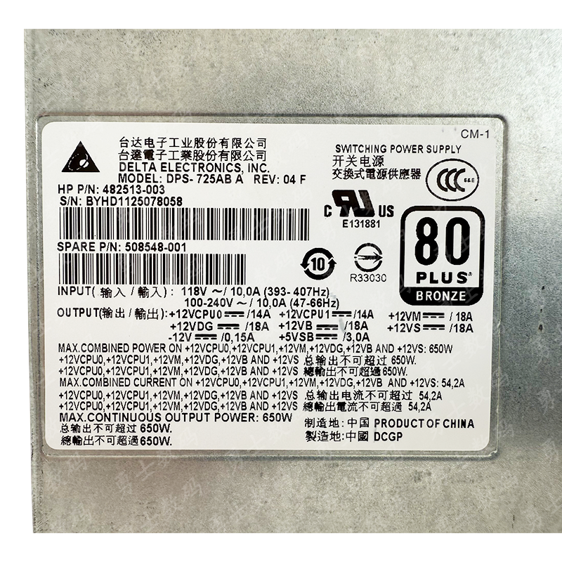 DPS 725AB 508548 惠普HP工作站 001 003 Z600电源 482513 原装