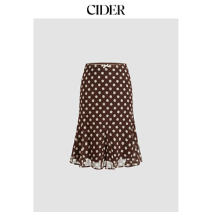 CIDER蕾丝蝴蝶结设计感鱼尾半裙美式 复古波点半身裙114367943