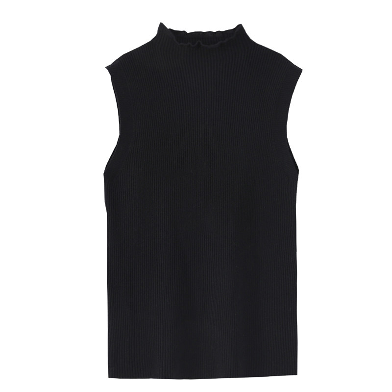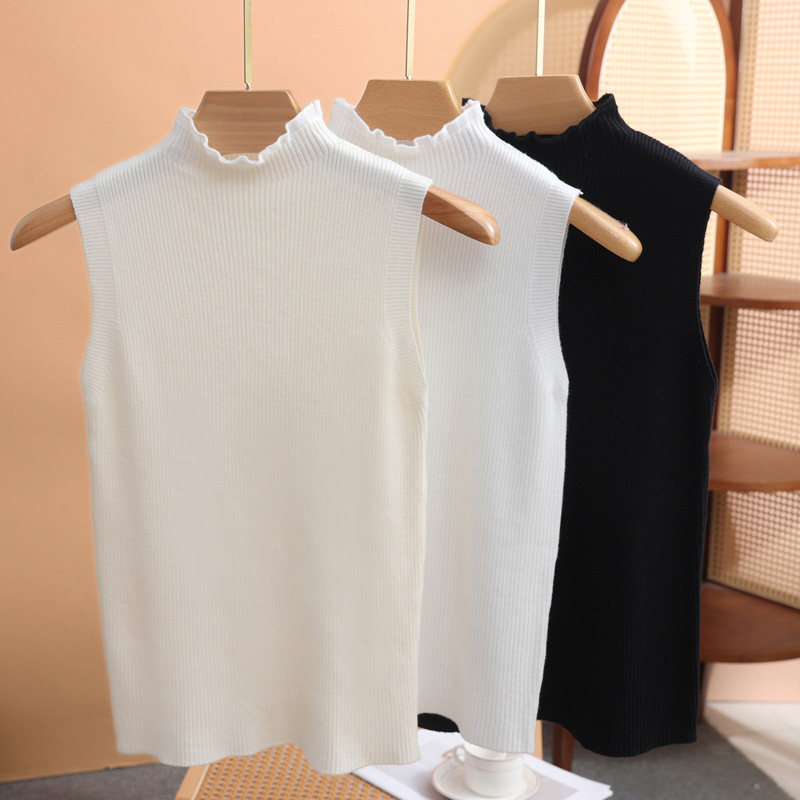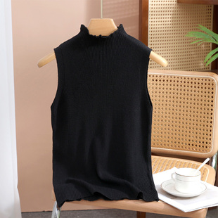 针织t恤上衣半高领法式 木耳边蕾丝无袖 花边吊带背心 新款 2025夏季