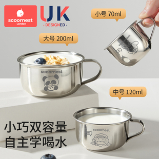 如山儿童水杯牛奶杯316L不锈钢敞口宝宝家用2一3岁以上吸管米糊杯