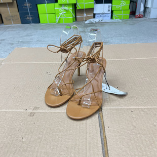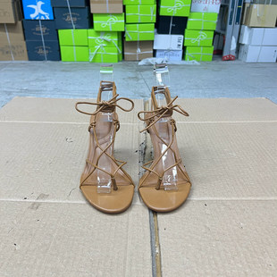 凉鞋 圆头纯色夹趾系带细高跟绑带时装 新款 外贸原单shoes女鞋