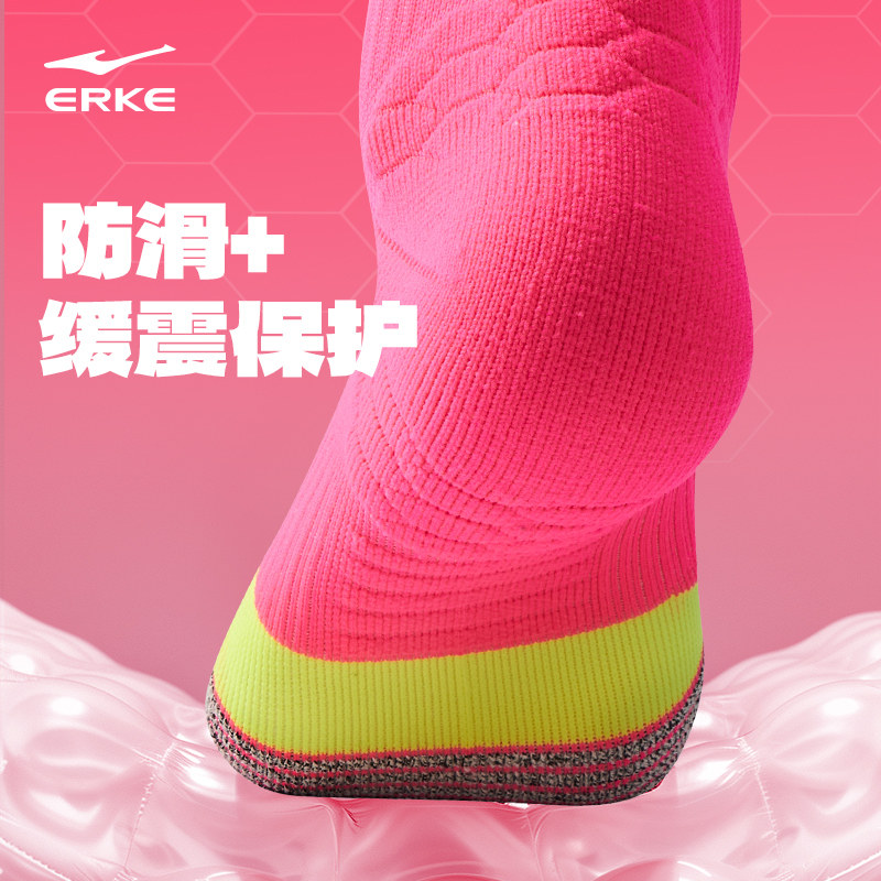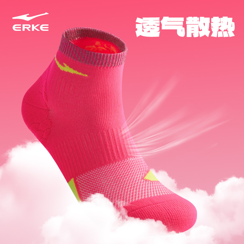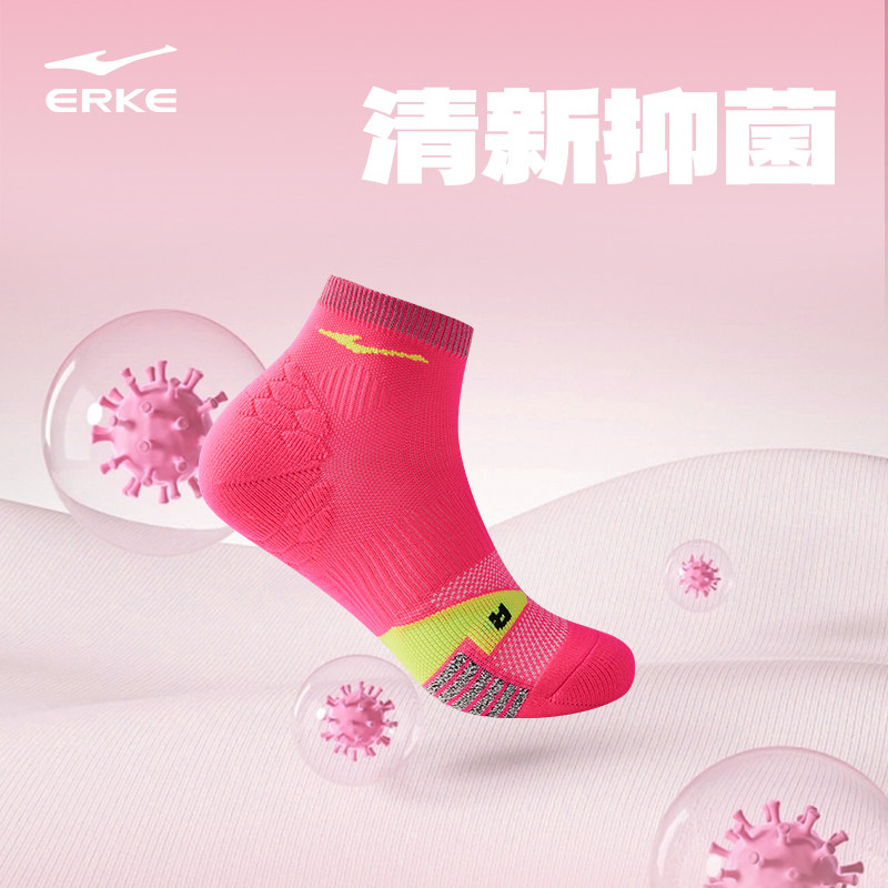 鸿星尔克芷境袜子品牌正品 毛圈短袜男 竞速跑步袜火龙果不焦绿同款