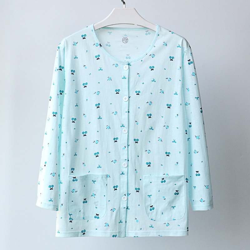 汗衫 睡衣上衣妈妈长袖 家居服女 纯棉内衣中老年人全棉开衫 春夏薄款