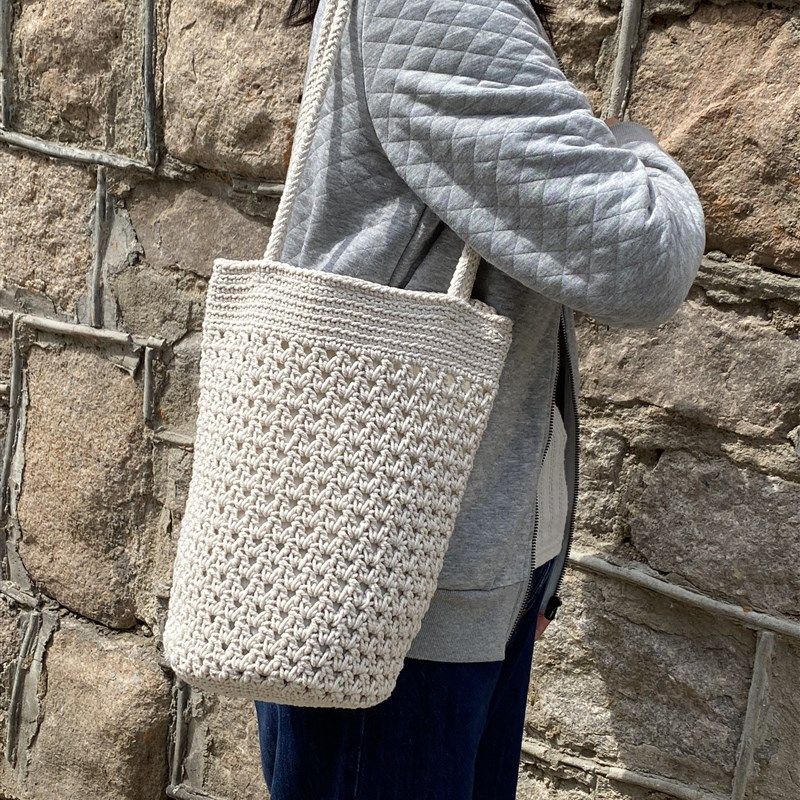 新款 春夏泫雅风针织手拎包外出游玩百搭手提包上班通勤便携水桶包