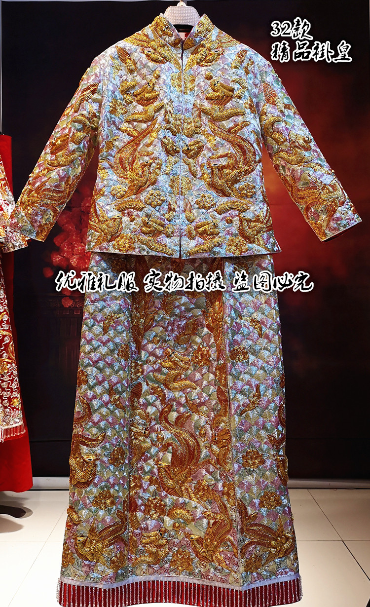 定制精品 金银线秀禾服新娘旗袍结婚敬酒服32 手绣褂皇龙凤褂裙褂