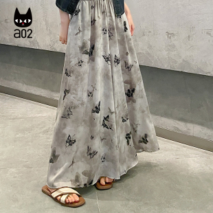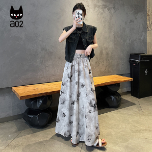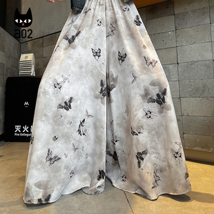 夏季 子女2026新款 慵懒风轻薄穿搭 休闲裤 a02国风宽松水墨裙裤