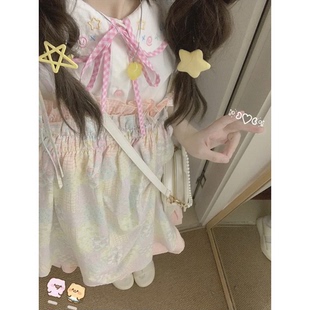 女两件套装 日系可爱甜美小个子糖果印花超仙吊带连衣裙 白色衬衫