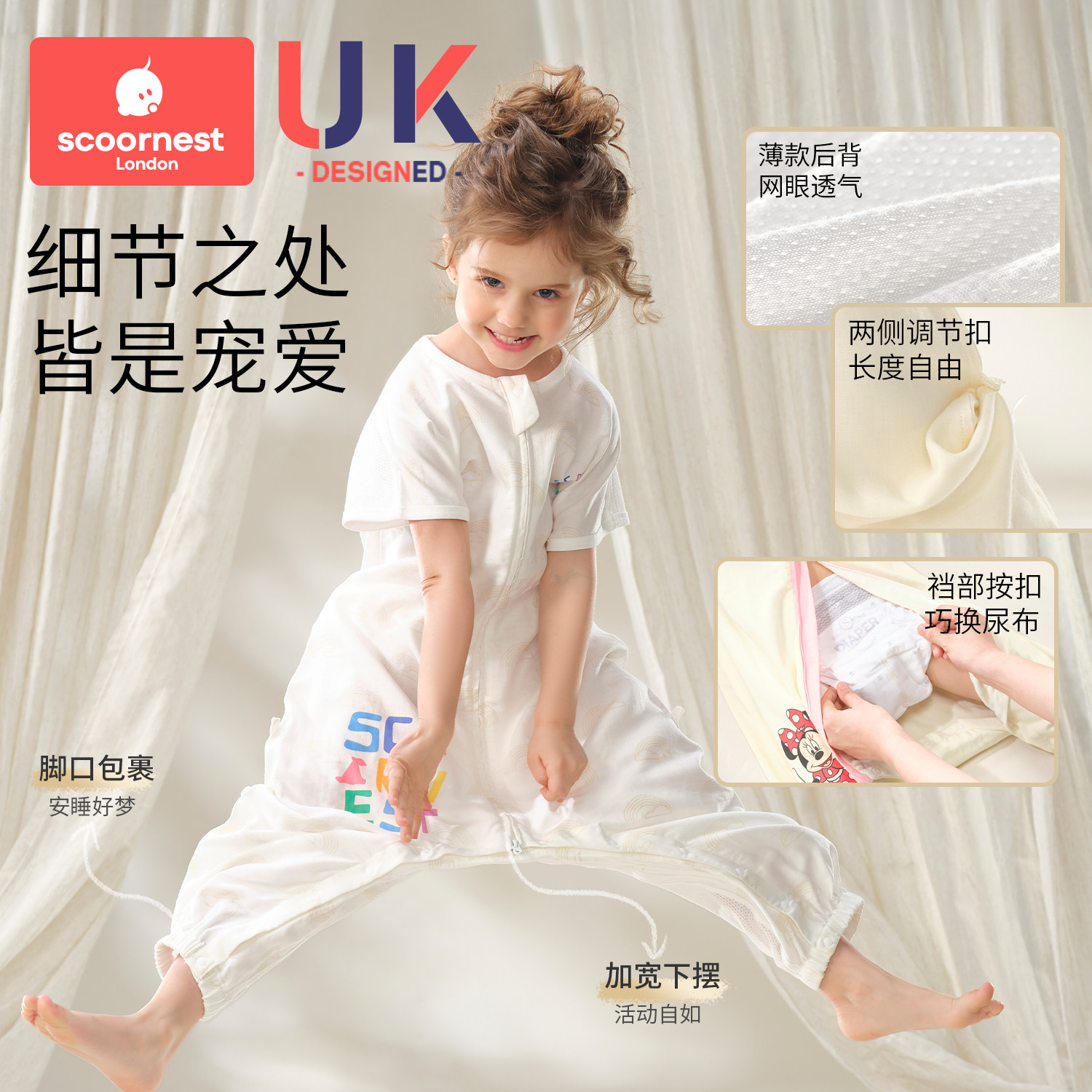 科巢迪士尼婴儿睡袋春夏薄款 通用防踢被 双层纱布儿童分腿宝宝四季