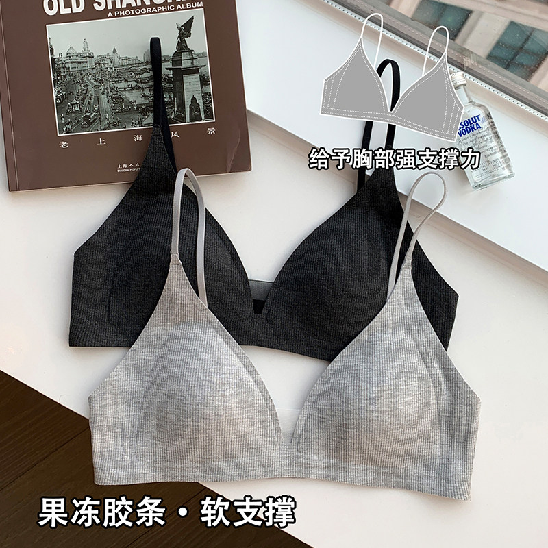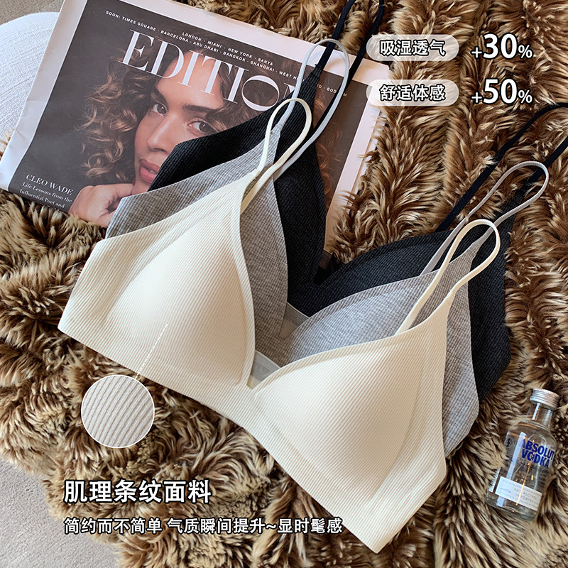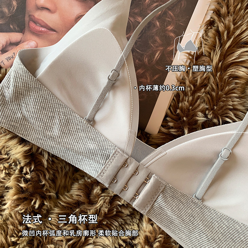 薄款 三角杯性感深V内衣女秋细肩带无钢圈收副乳防下垂文胸罩 法式