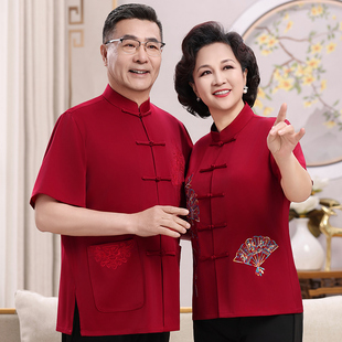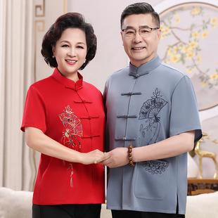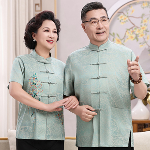套装 真丝唐装 爸爸爷爷老人生日婚宴礼服短袖 夏装 中老年父母情侣装