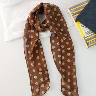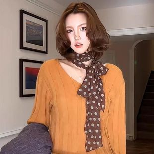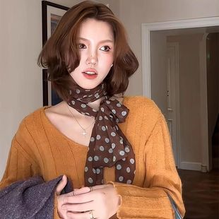 棕色波点丝巾印花高级百搭配饰系脖女2025年新款 发带绑发长条围巾