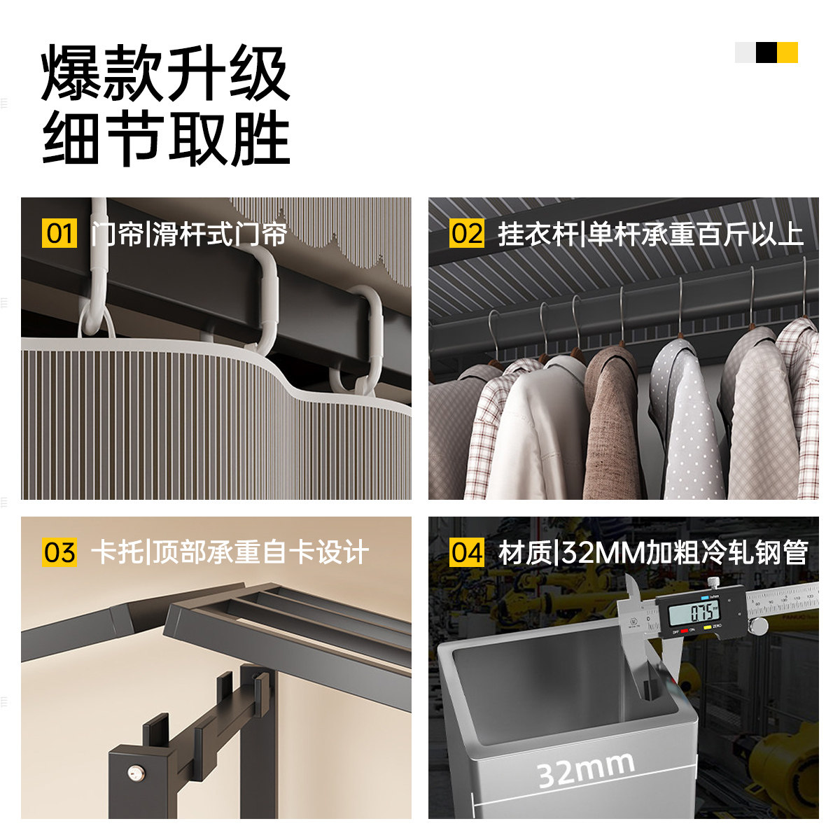 免安装 衣柜家用卧室简易布衣柜出租房用结实耐用钢架一体折叠衣橱