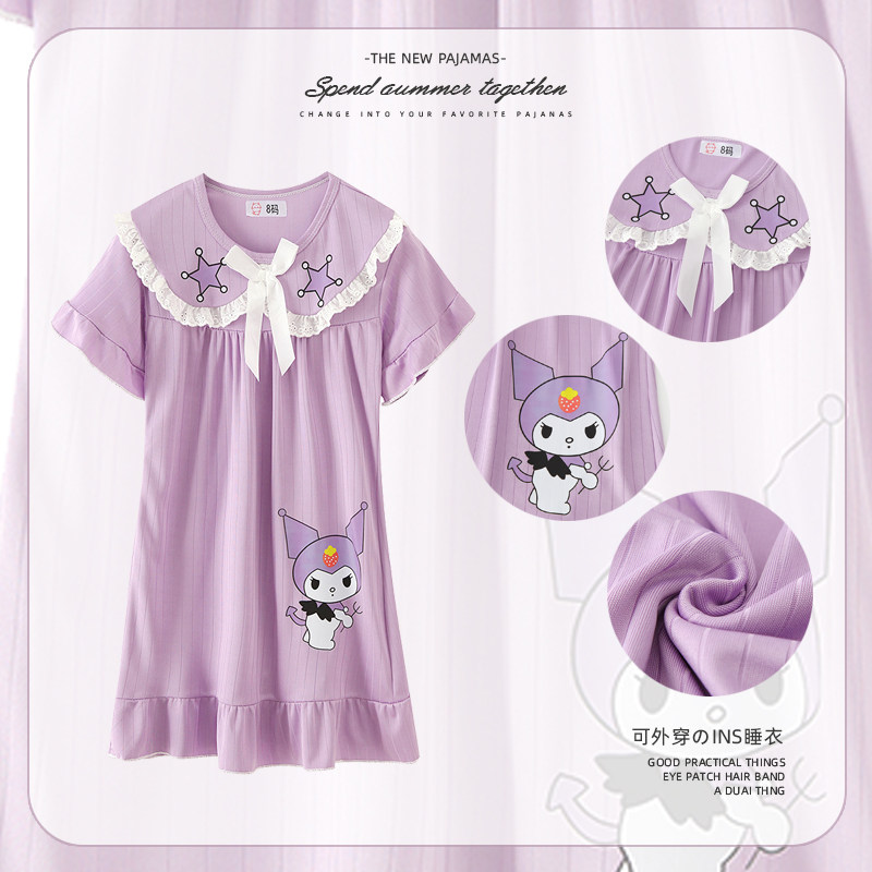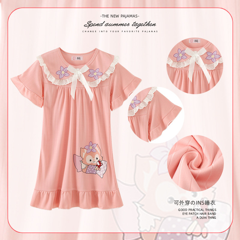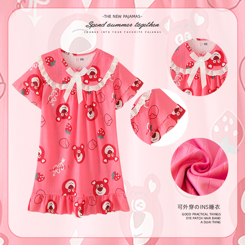 薄款 短袖 小女孩宝宝睡衣中大童 夏季 全棉母婴纯棉儿童睡裙女童新款