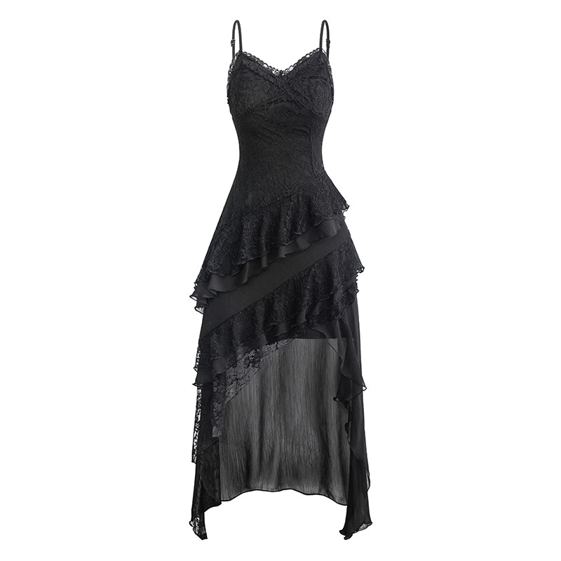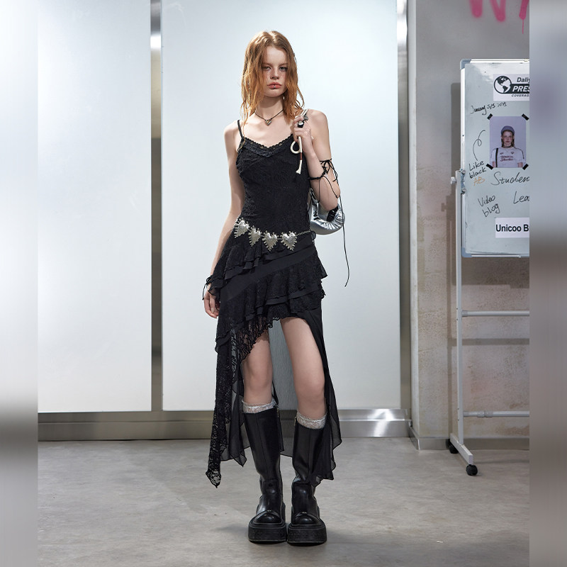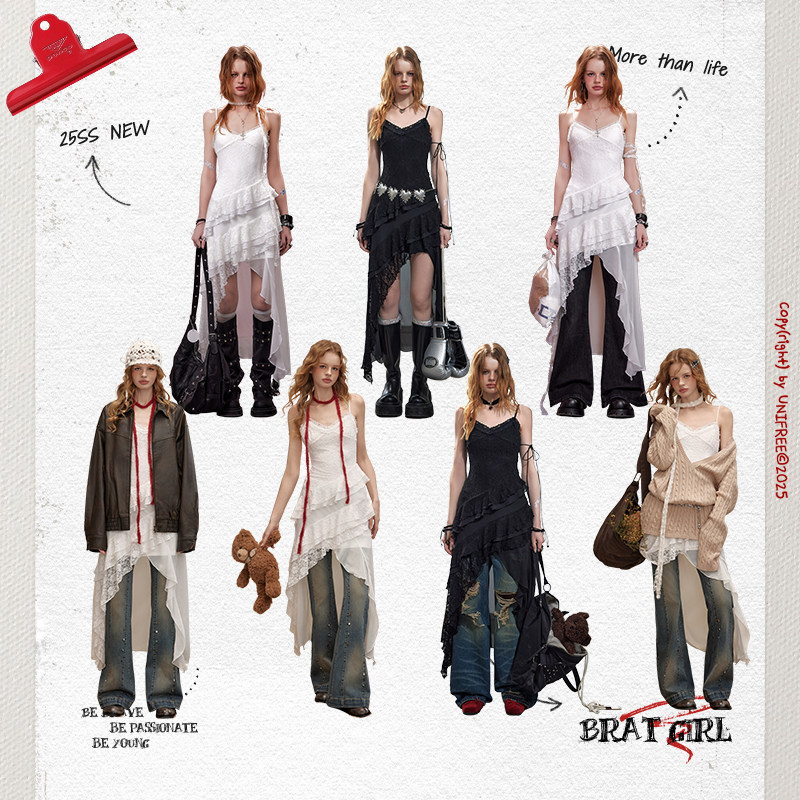 UNIFREE音乐节蕾丝吊带裙白色不规则收腰气质连衣裙 明星同款