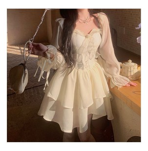 超仙气质温柔显瘦灯笼袖 春装 抹胸连衣裙 双生芭蕾 Catyears猫年
