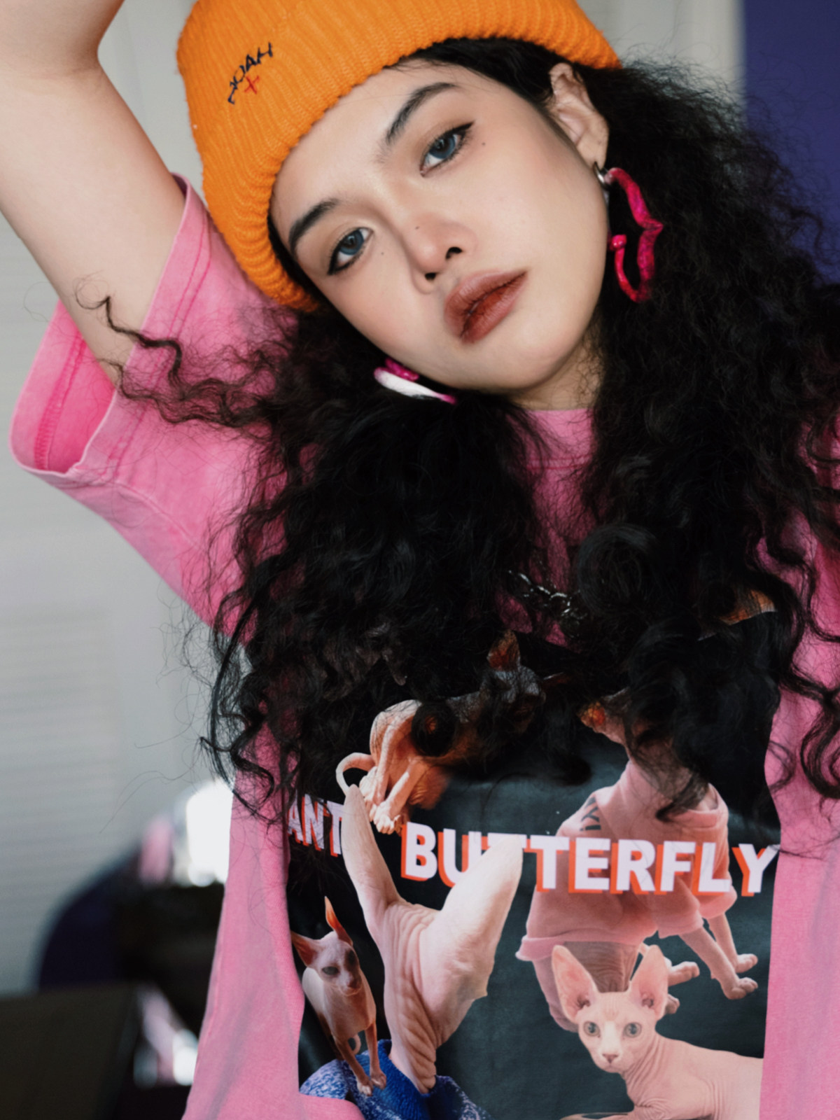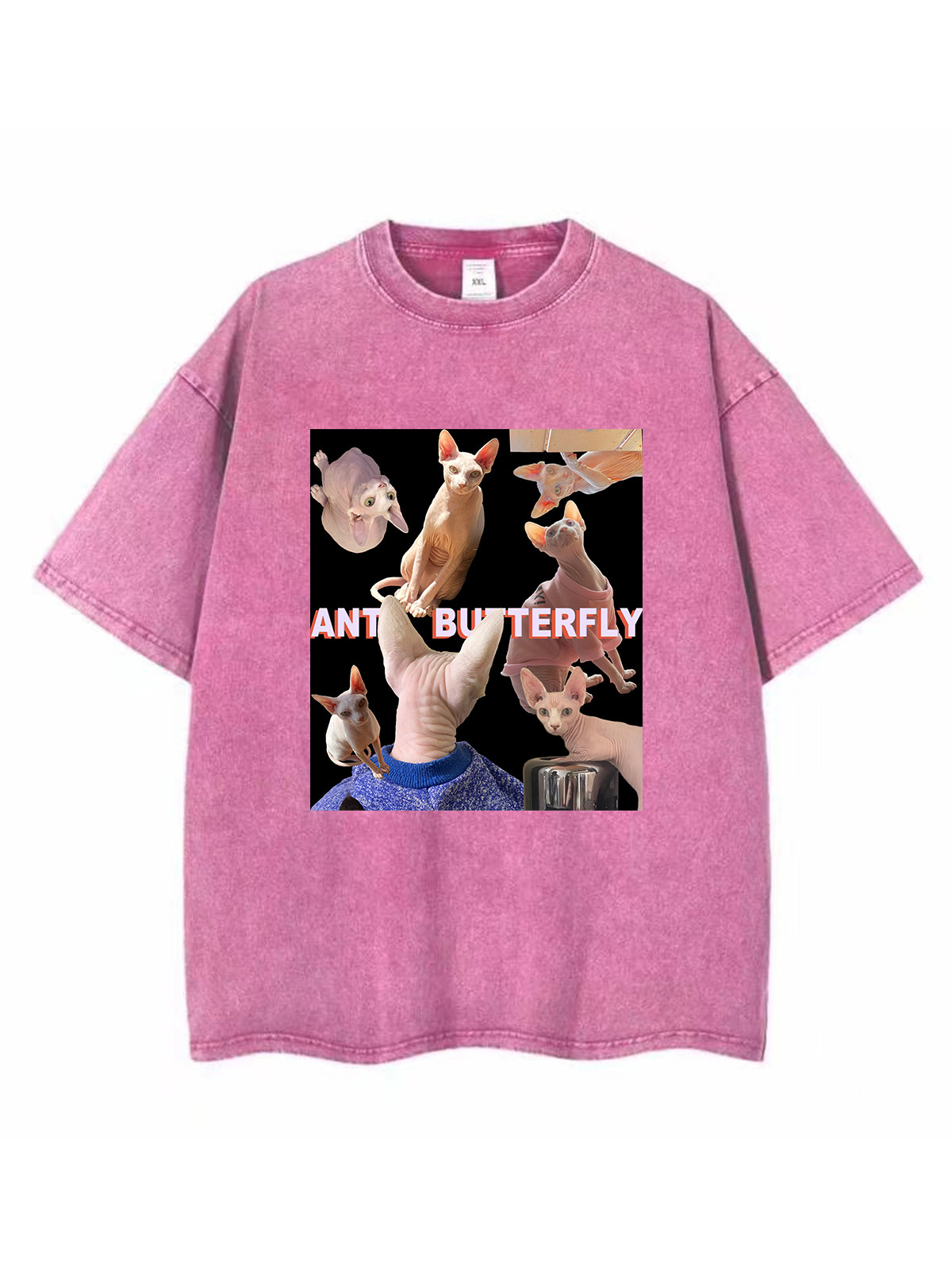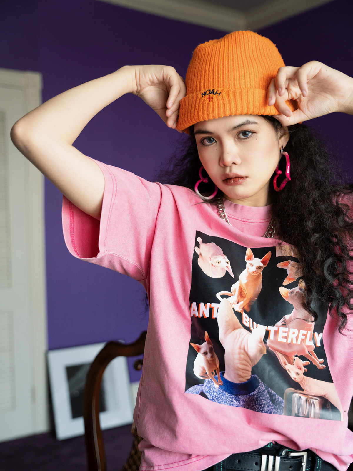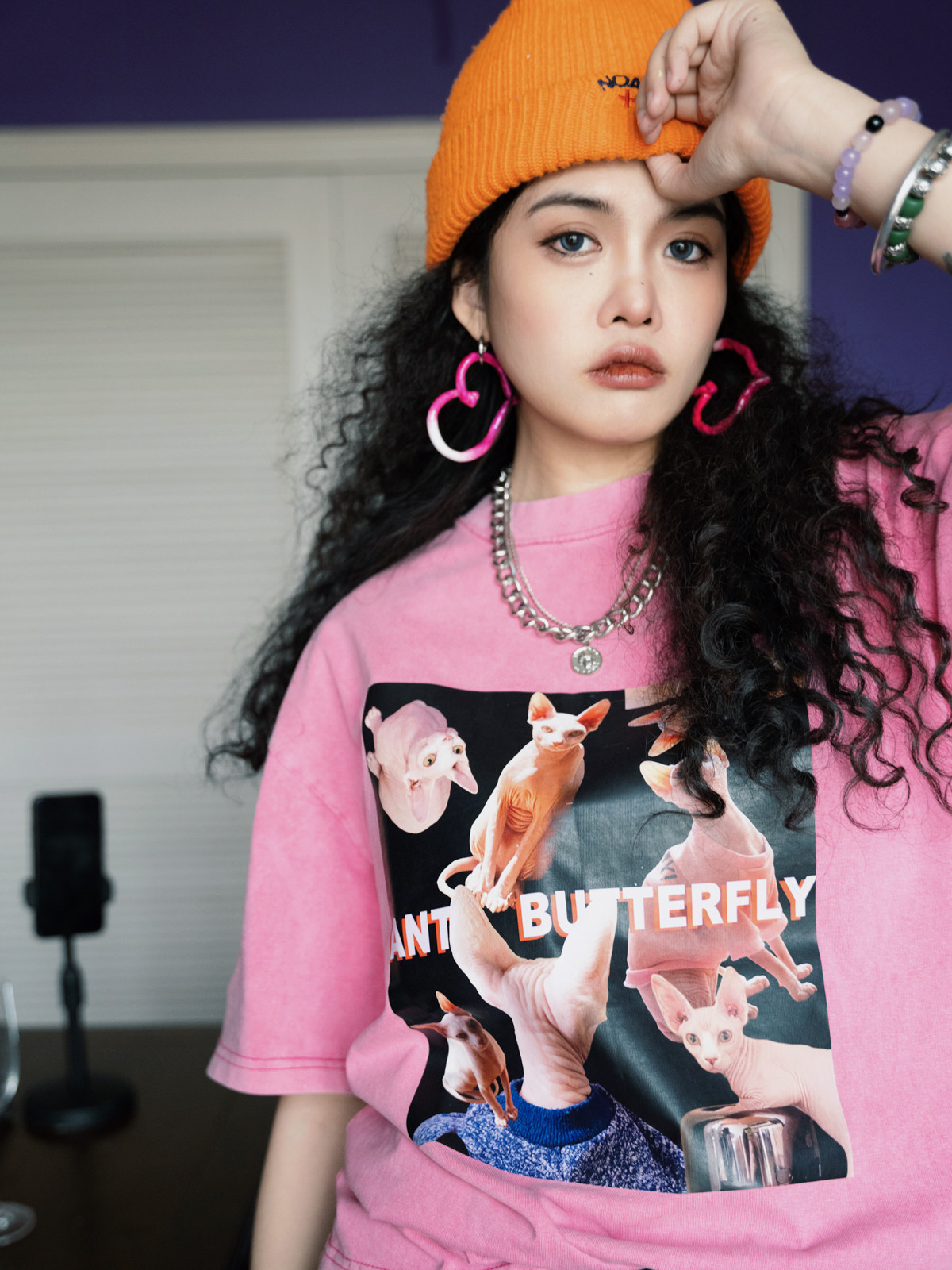 复古无毛猫印花甜酷辣妹宽松T恤短袖 原创美式 男女 BUTTERFLY ANTI
