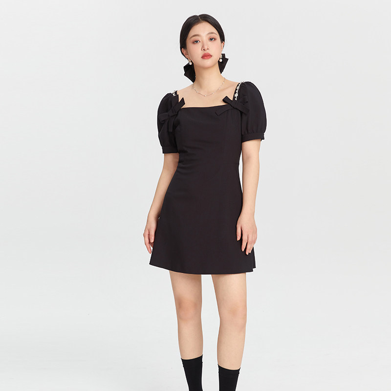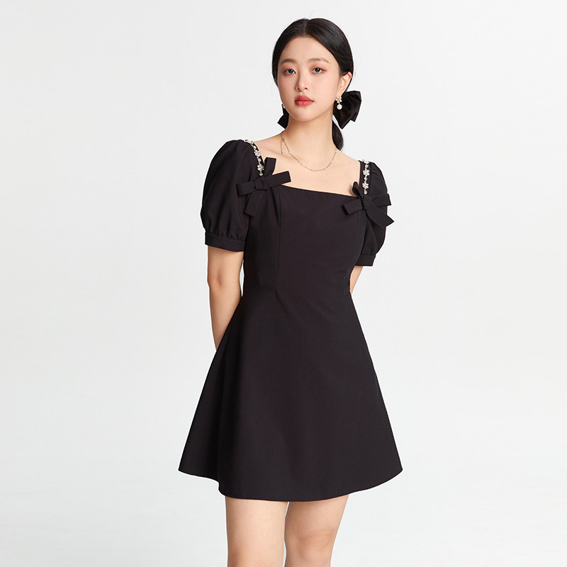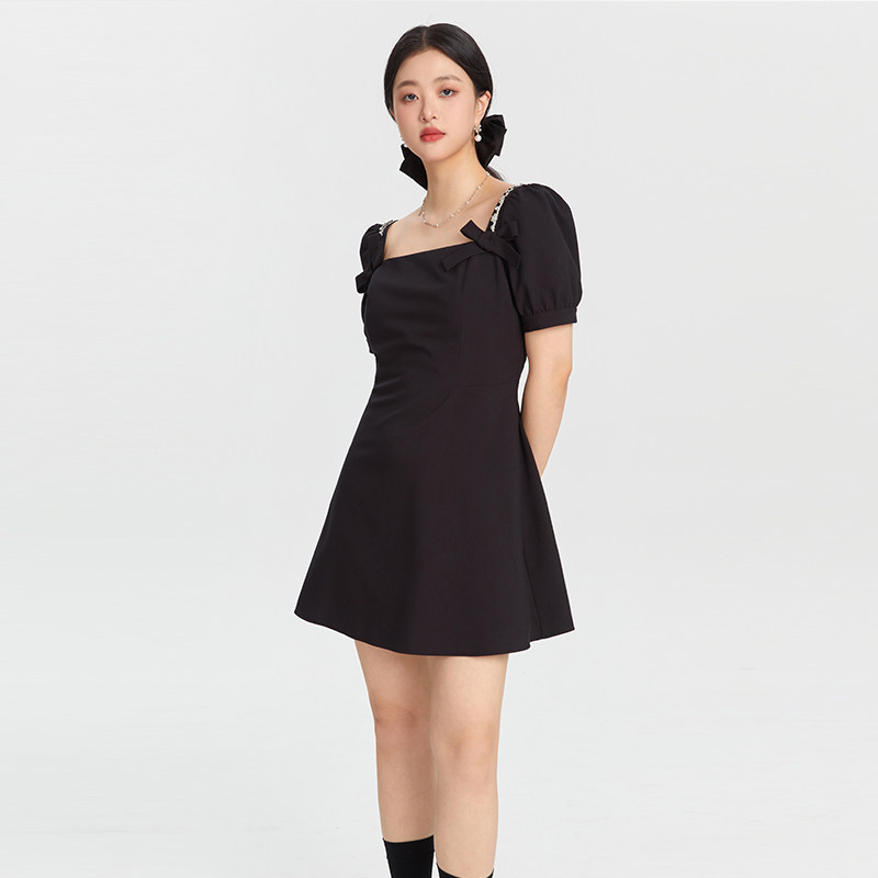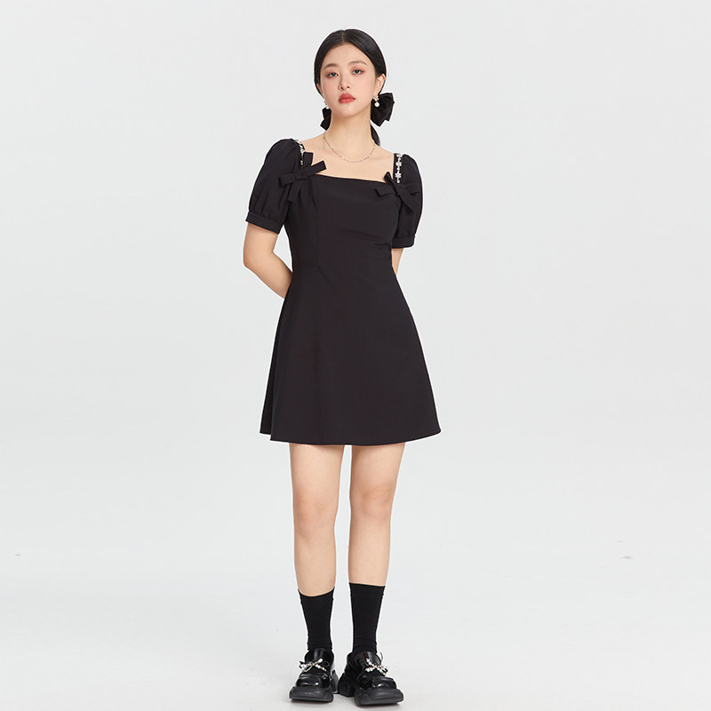 女装 新款 法式 连衣裙2025夏季 微胖mm高级感显瘦小黑裙 泡泡袖 GW大码