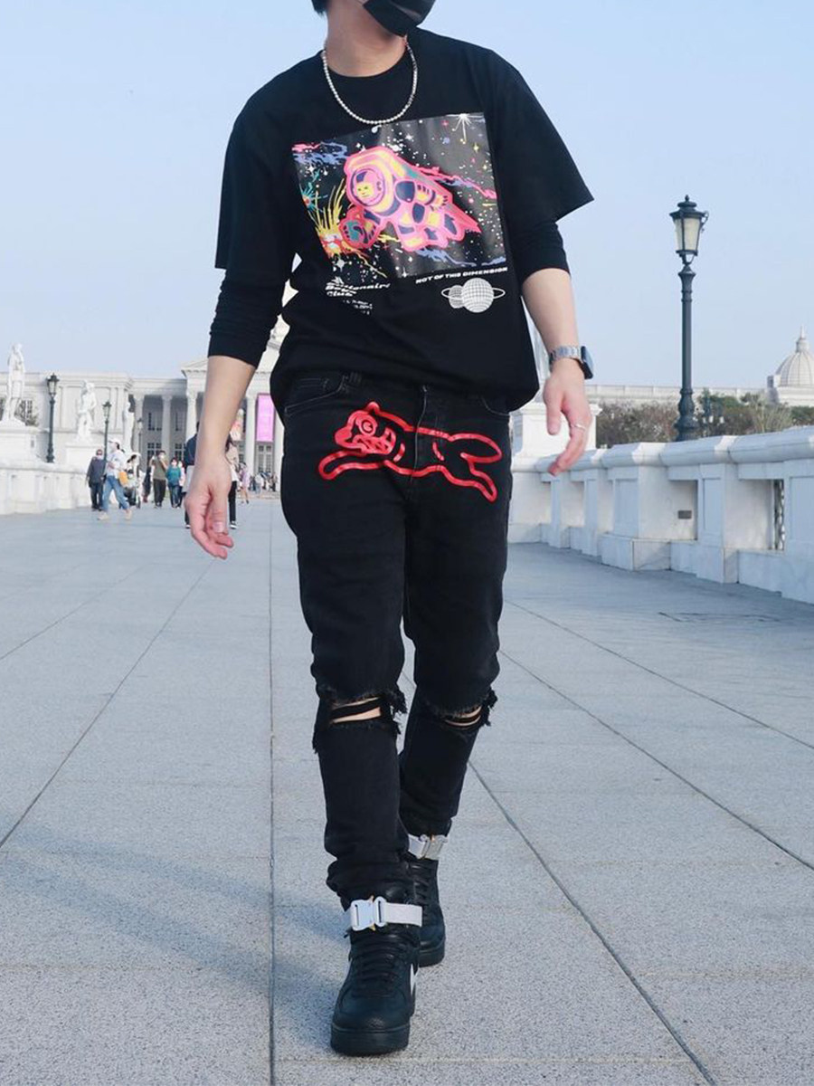 Club Boys Jean BBC 潮物Woo 破坏水洗飞狗牛仔长裤 Billionaire