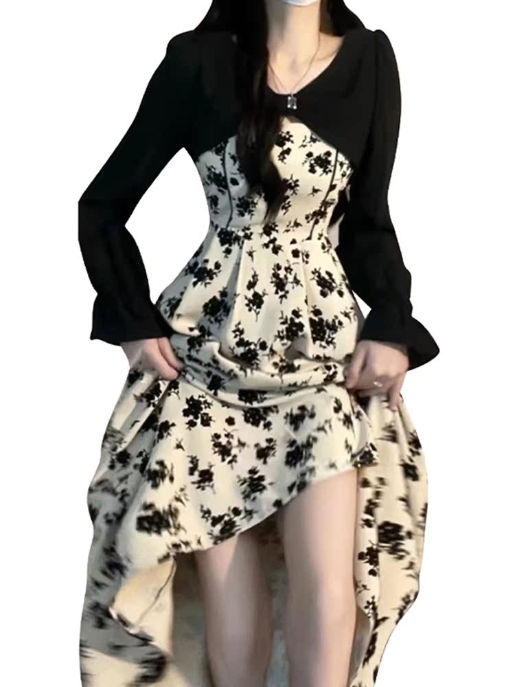 连衣裙 茶歇甜美赫本风拼接大码 法式 碎花拼接吊带裙女2025春夏新款
