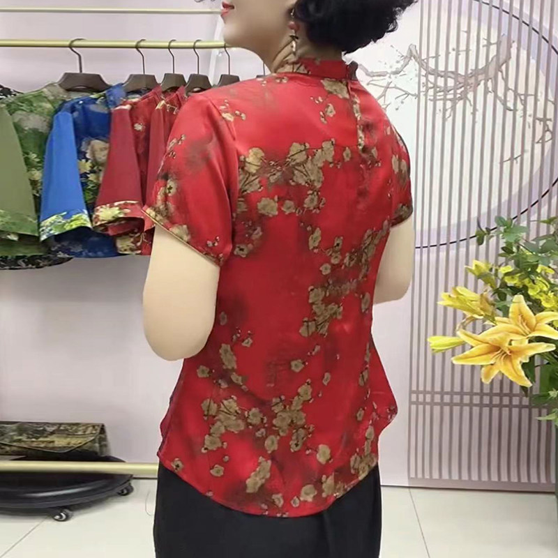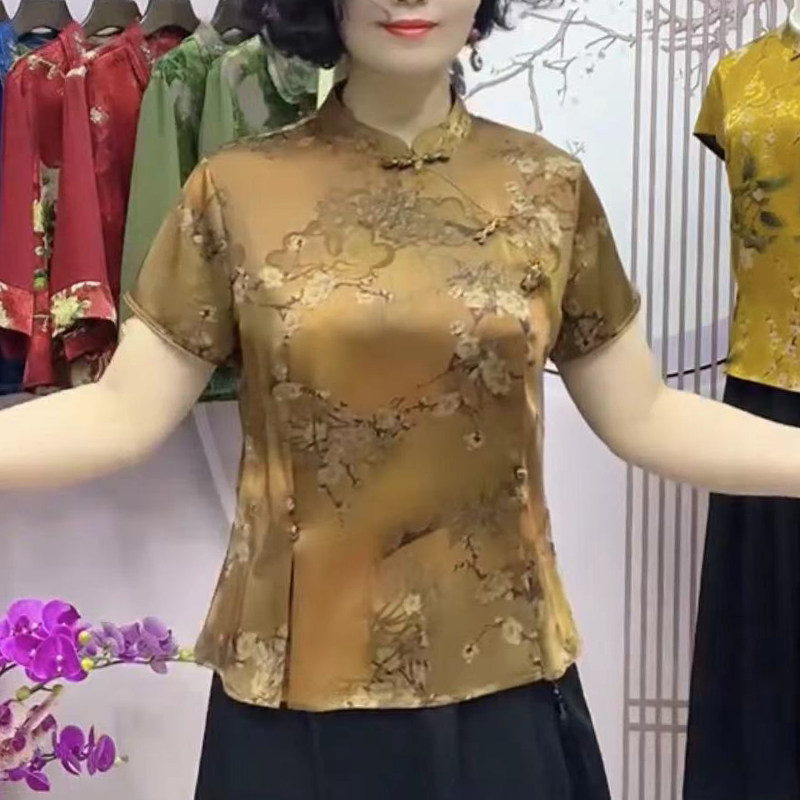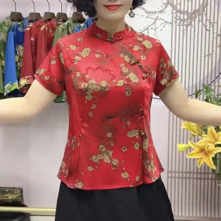 新款 女短袖 时尚 盘扣复古真丝唐装 上衣 中国风改良旗袍上衣中式 夏季