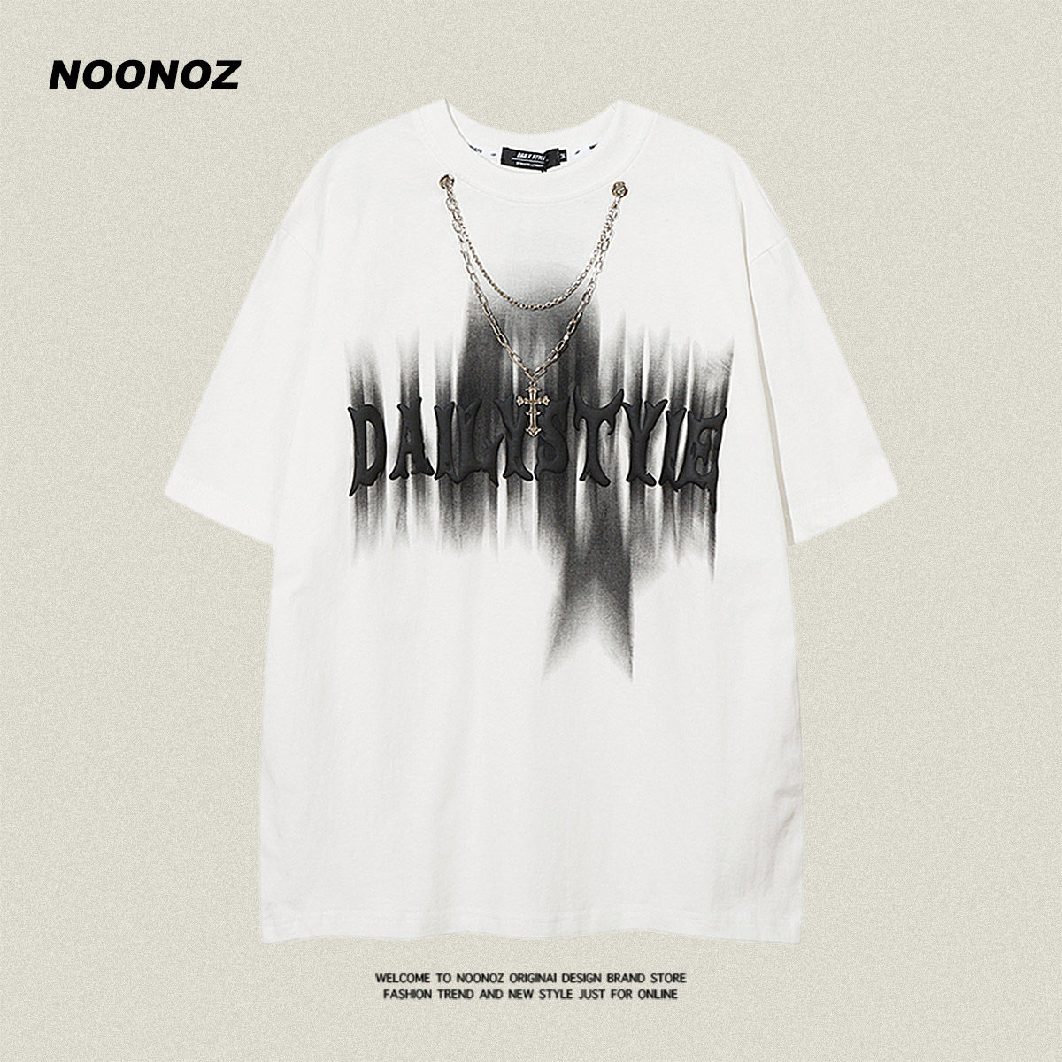 男T恤潮牌嘻哈原宿风纯棉情侣装 NOONOZ美式 高街字母发泡印花短袖