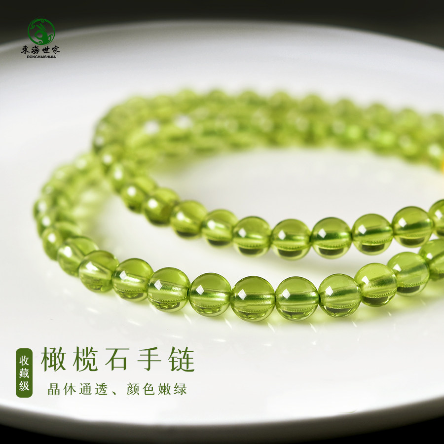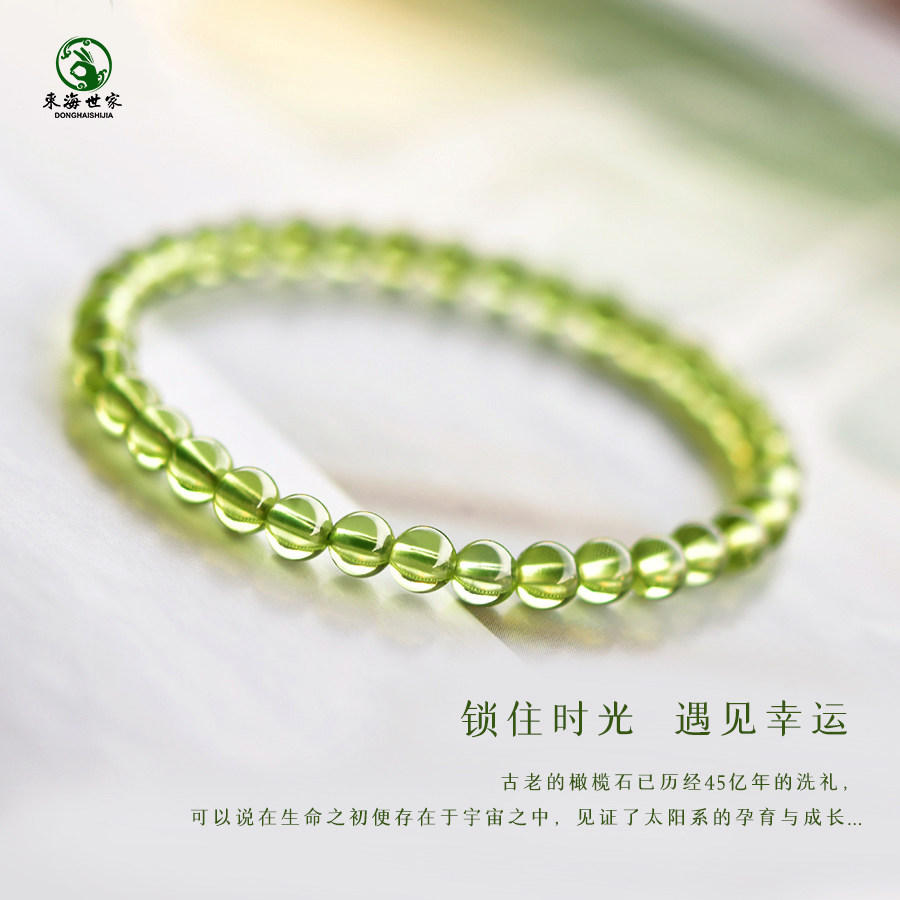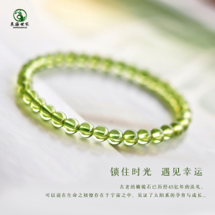 橄榄石手串女男东海水晶玛瑙翡翠玉石999黄金散珠子绿色宝石手链
