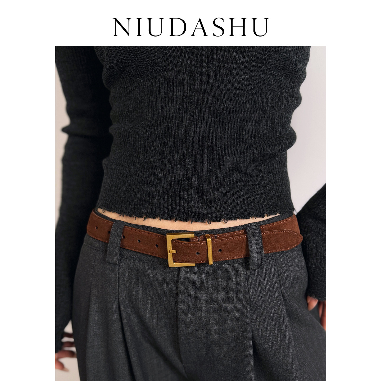 腰带女潮 饰百搭显瘦牛皮金色针扣配牛仔裤 新款 女士皮带真皮简约装