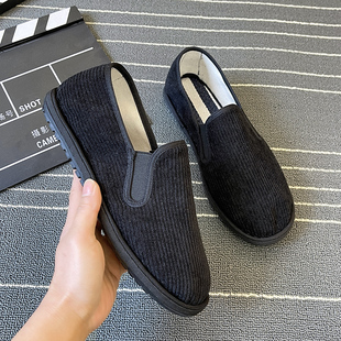 防臭 一脚蹬手工布鞋 老北京灯芯龙布鞋 男牛筋底休闲防滑透气学生鞋