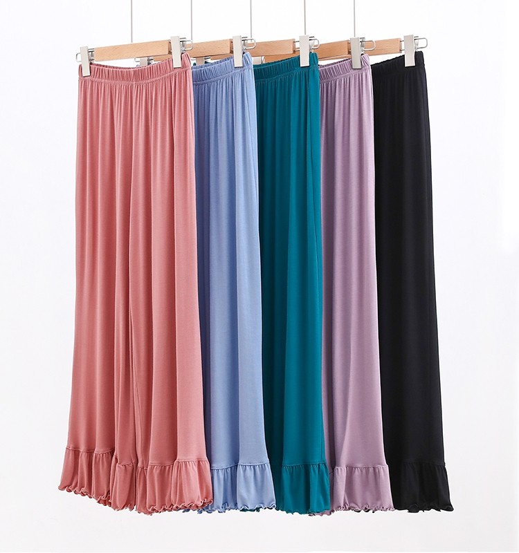 百搭休闲裤 阔腿裤 喇叭裤 显瘦垂坠感薄花边长裤 女夏莫代尔高腰韩版