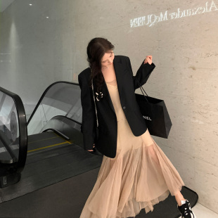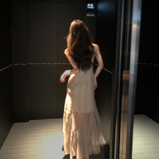 Middletone 决美超仙吊带连衣裙仙女裙度假长裙 半岛松茶