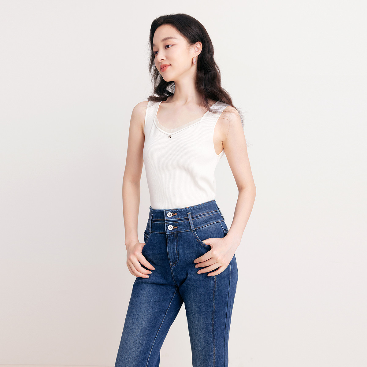 打底衫 吊带背心女新款 无袖 内穿针织大码 上衣 纯棉罗纹性感蕾丝修身