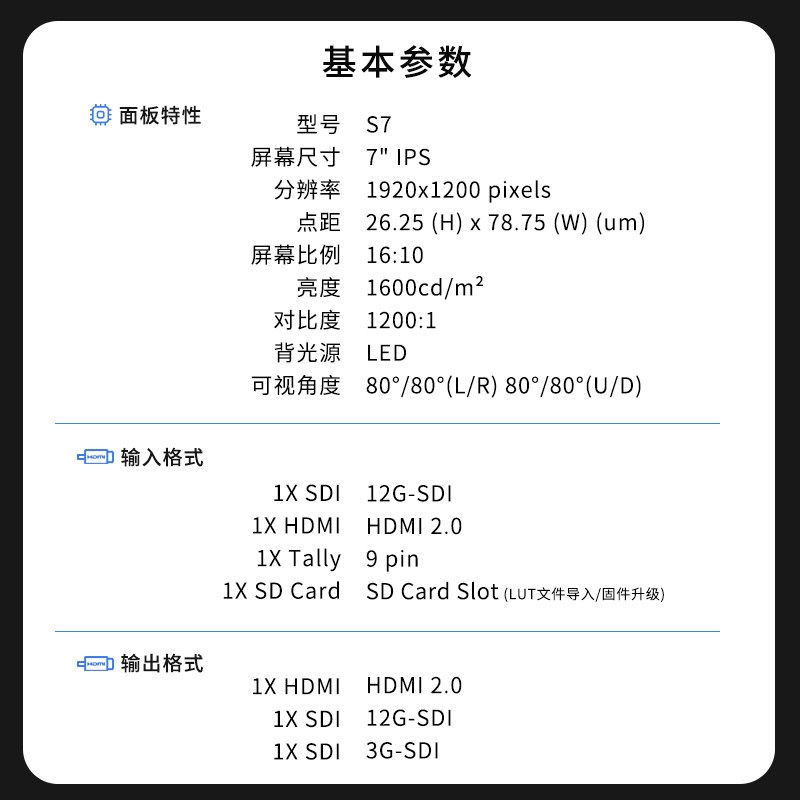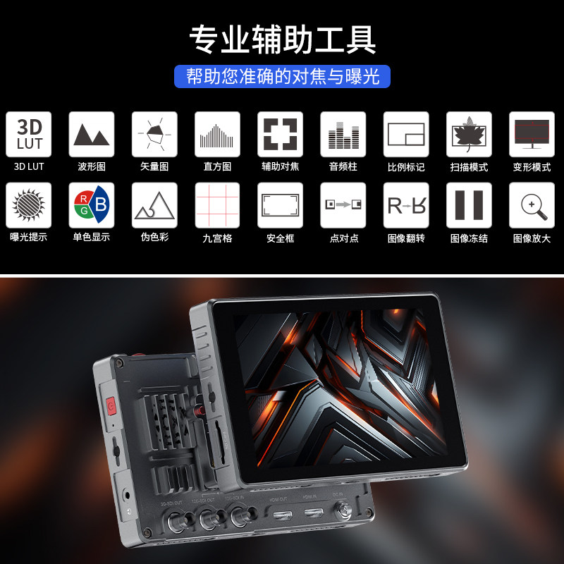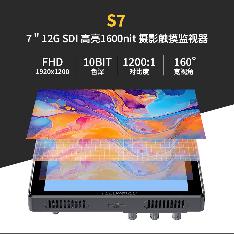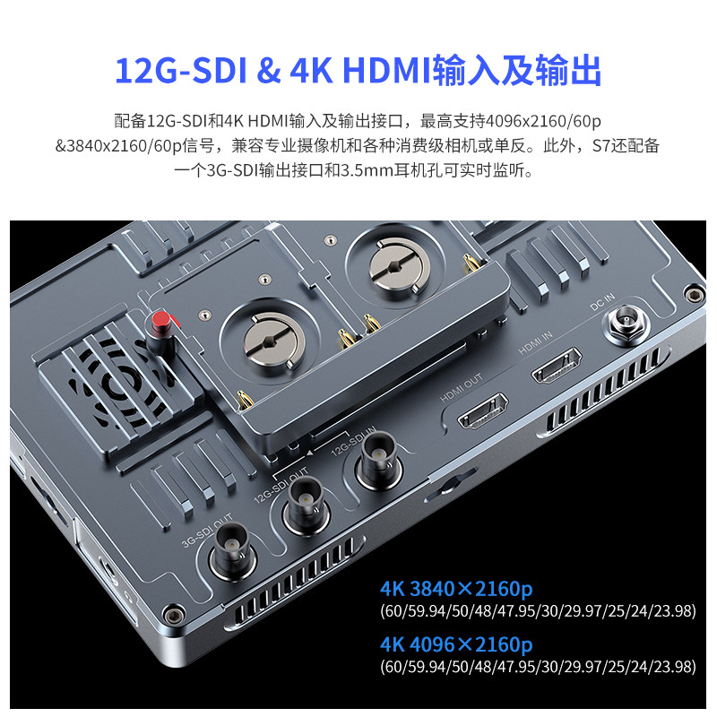 高清高亮SDI S7单反监视器相机摄影机监视屏微单单反 HDMI互转导演4K取景器视频显示屏 7寸CNC监视器 富威德