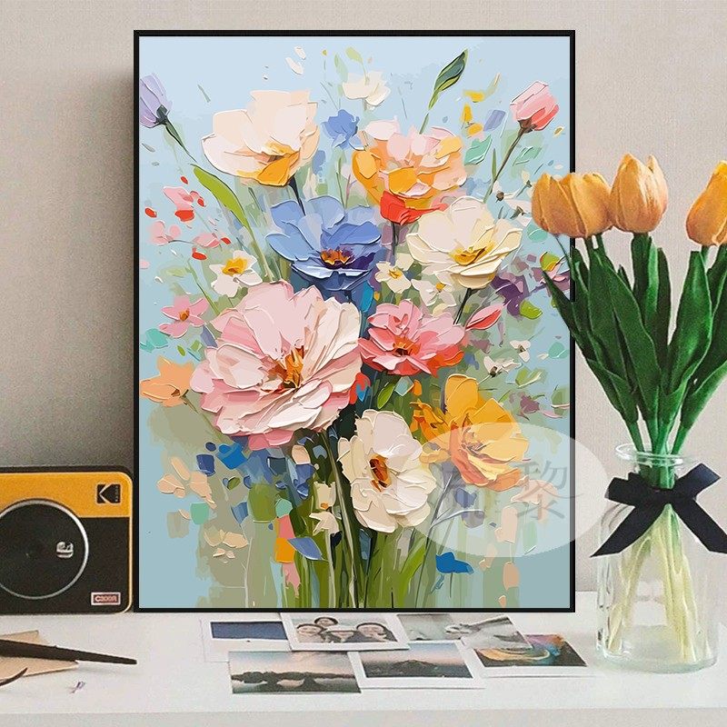 繁花似锦花卉DIY数字油彩画解闷手工绘填充涂色高级感客厅装 饰画