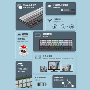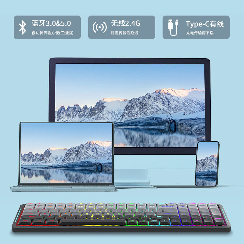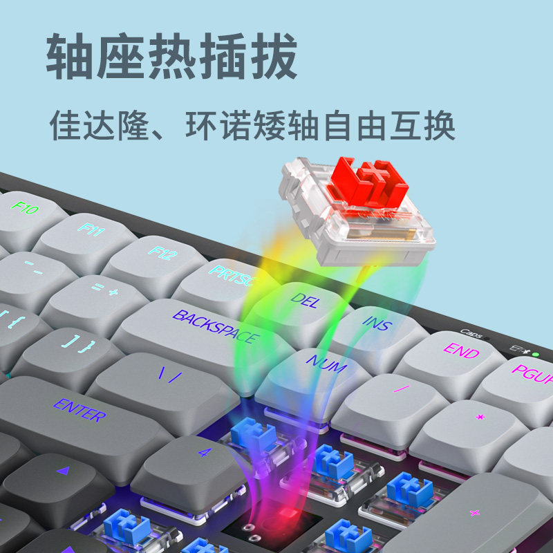 新贵SK01渐变雅灰超薄矮轴三模无线蓝牙机械键盘渐变透光电脑办公