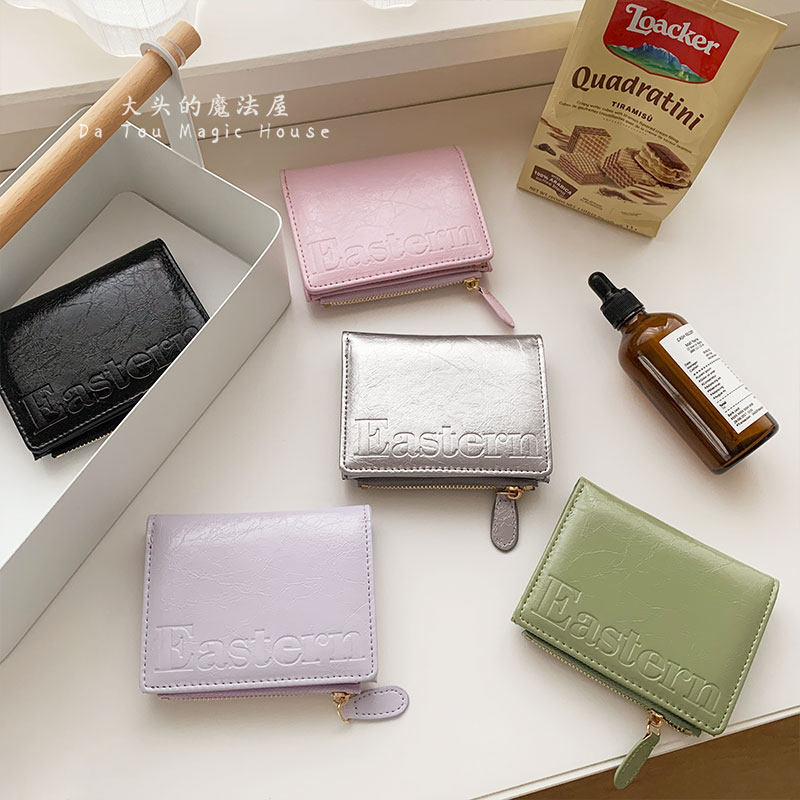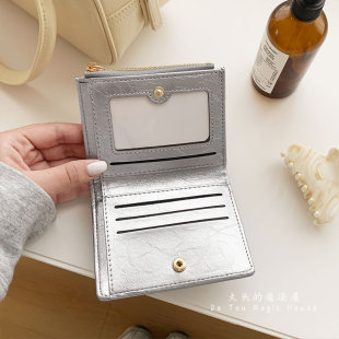 小众高级感爆裂纹短款 多卡位韩系简约卡包纯色多功能女士钱包