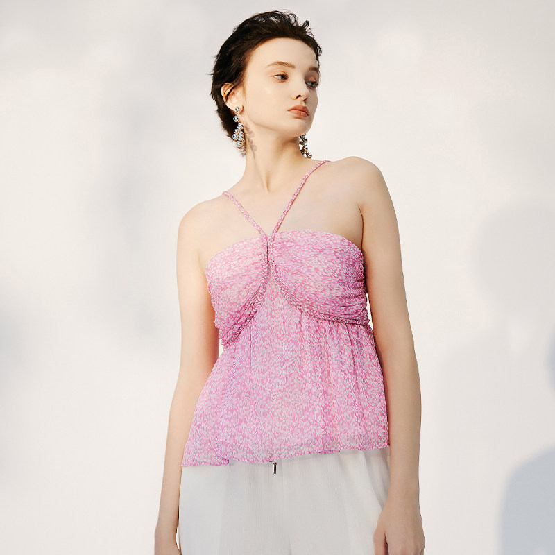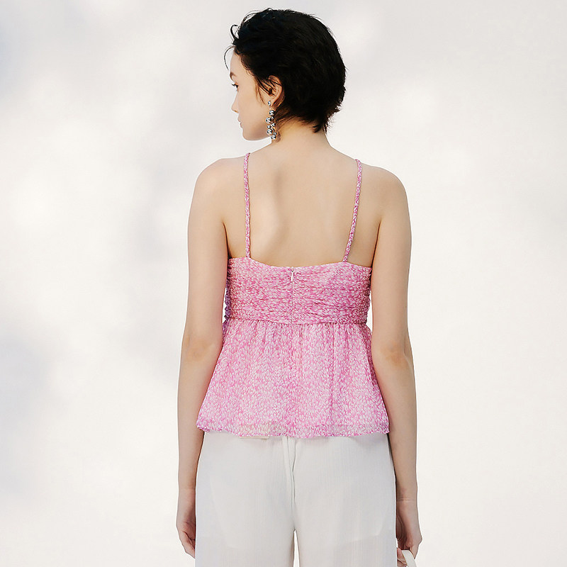 新款 朗黛夏季 MYMO甜美减龄背心衫 碎花雪纺吊带157M 商场同款