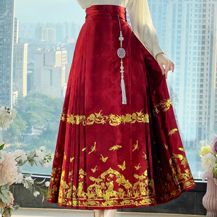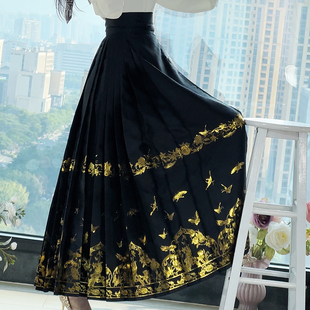 梨花棠黑色织金马面裙套装 重工刺绣明制汉服半身裙女原创 新中式