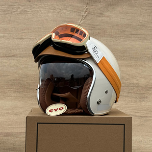 台湾evo复古头盔摩托电动车3 4半盔踏板125la安全帽男女四分之三