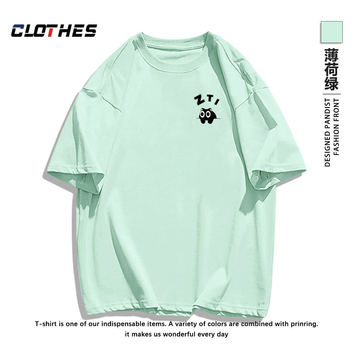 薄荷曼波独特印花薄荷绿纯棉短袖 宽松简约百搭上衣BF t恤ins女夏季