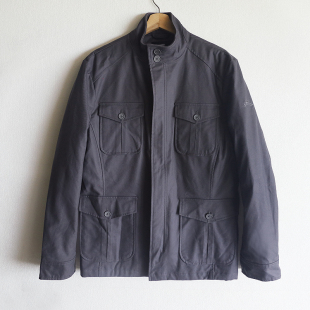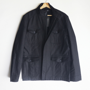 猎装 棉服外套 夹克棉衣纯棉全棉纱卡斜纹布黑色炭灰男立领防风工装