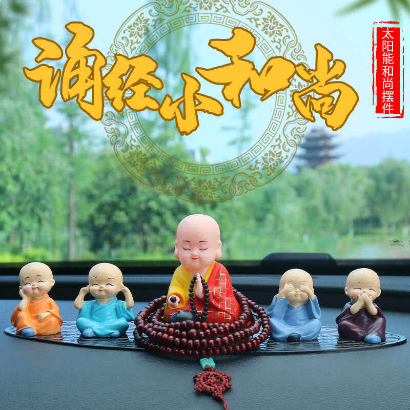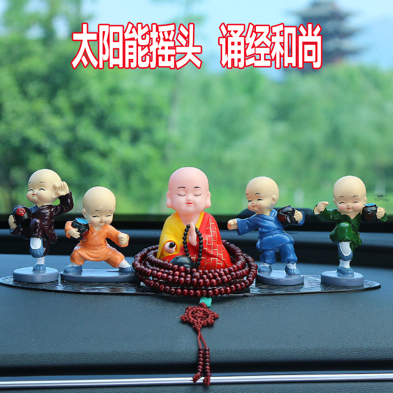 创意小和尚家居摆件车载太阳能公仔可爱车上中控台车内装 饰用品男