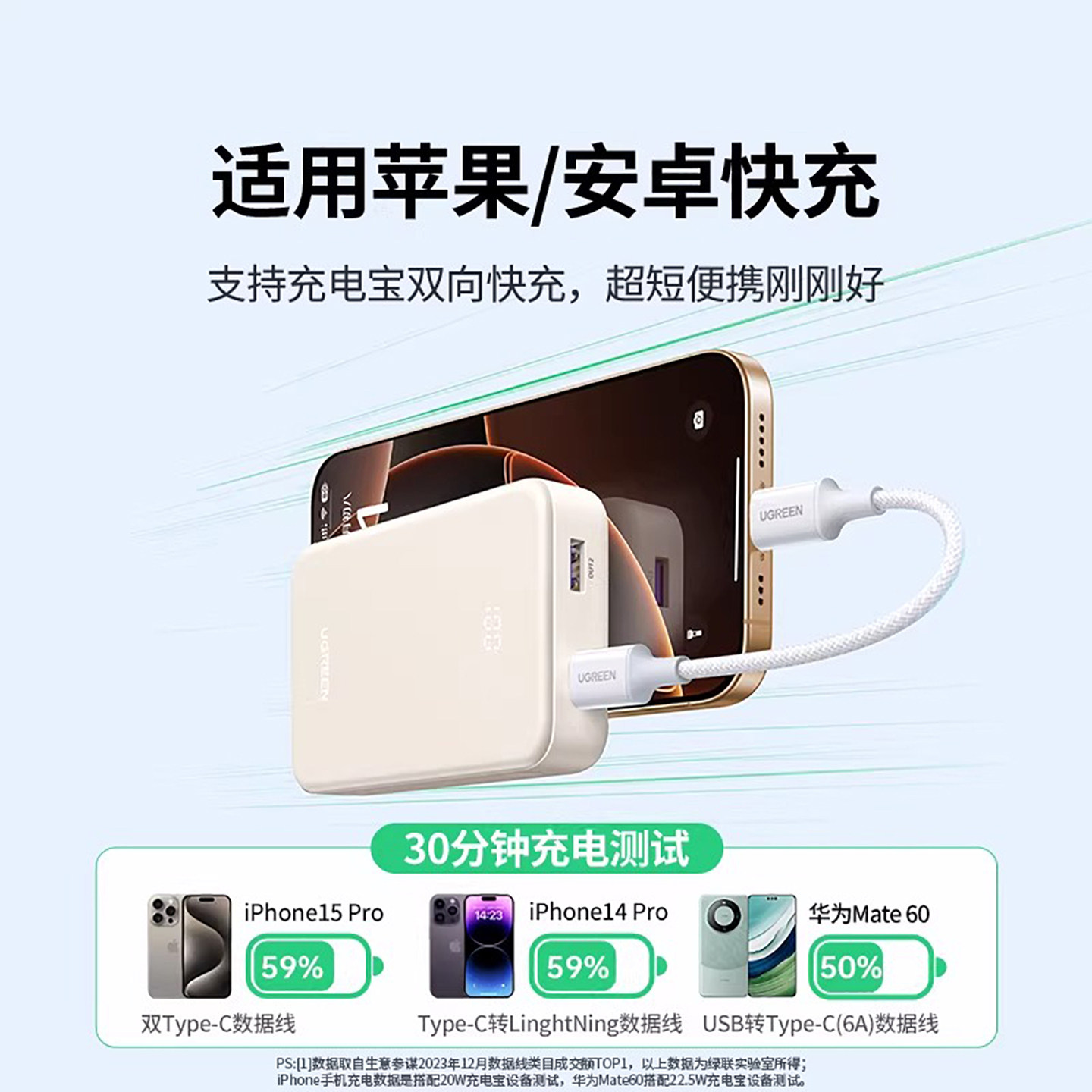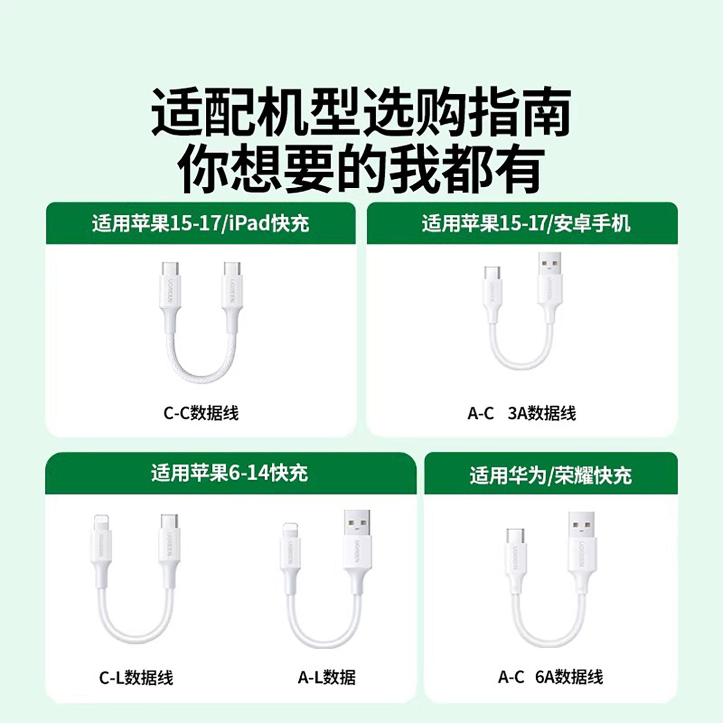 绿联充电宝短数据线双typec手机充电线适用苹果17 专用ctoc口 16iPhone15promax14华为小米usbc转快充电超短款