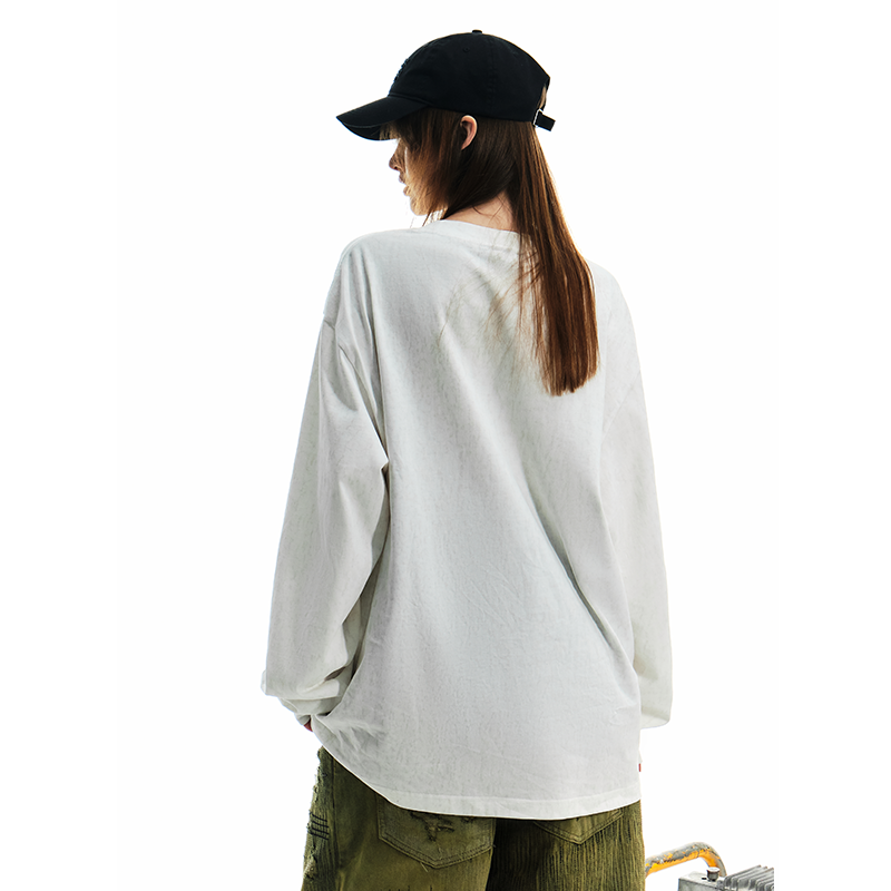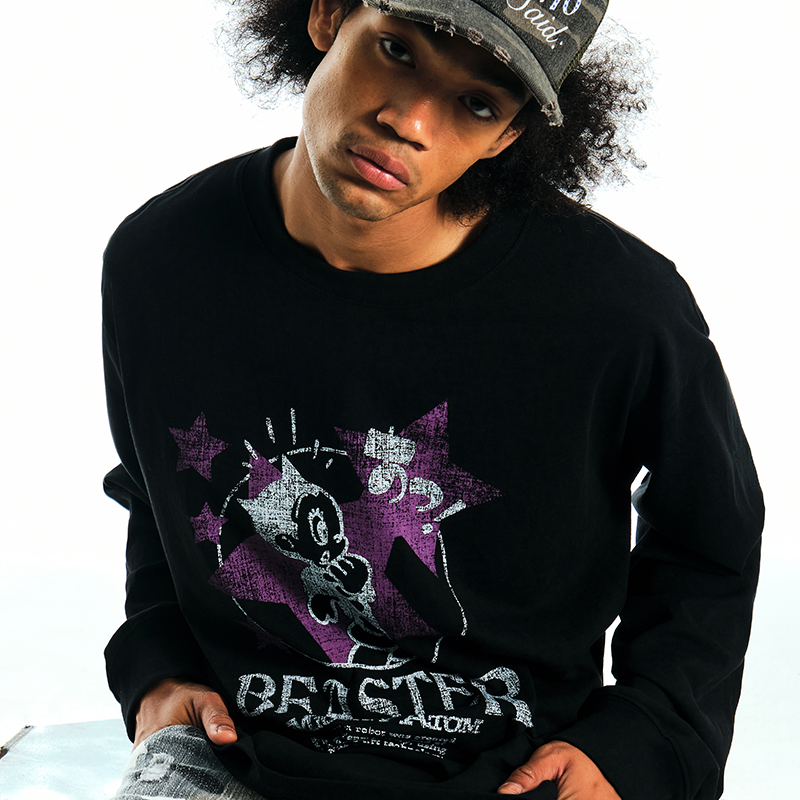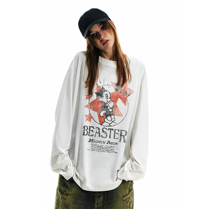 T恤男女水洗做旧宽松上衣 BEASTER撞色印花长袖 铁臂阿童木联名