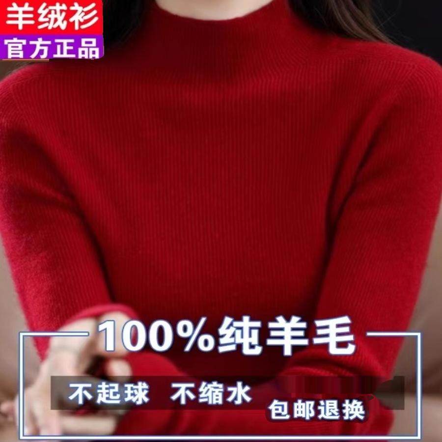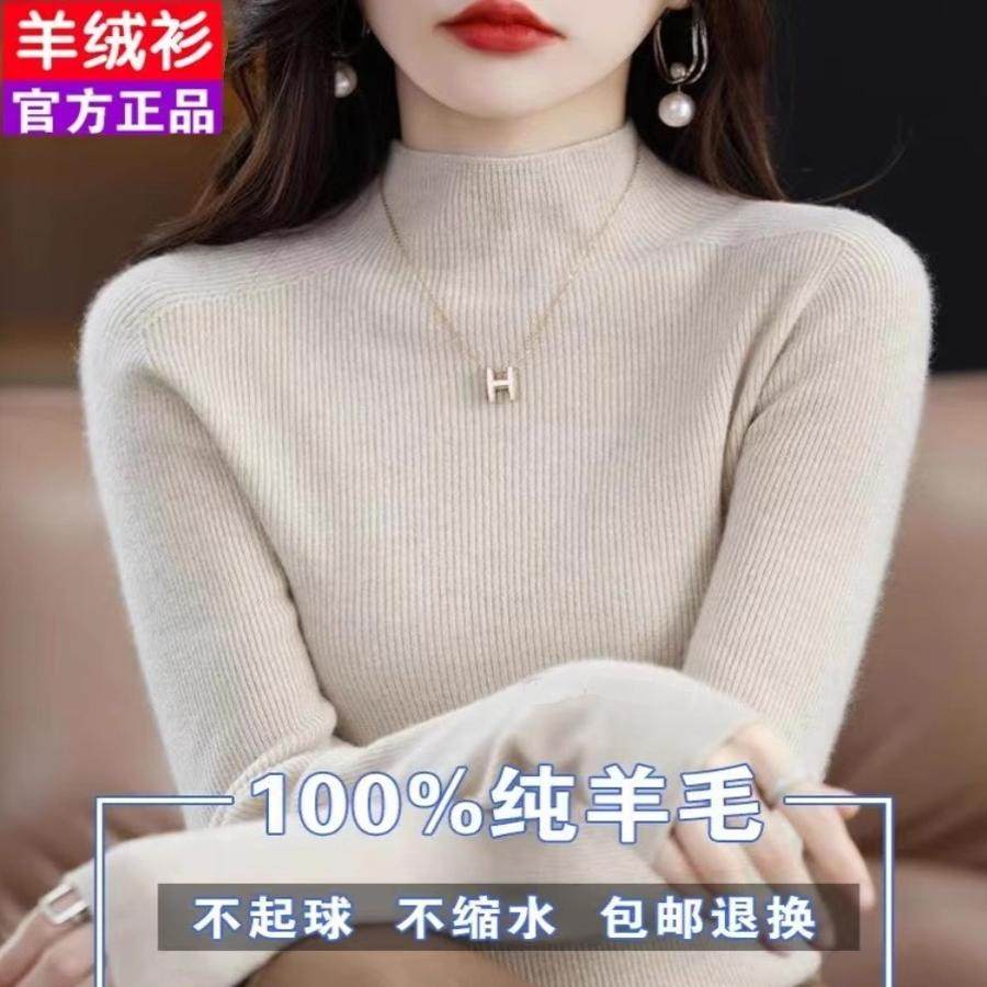 针织打底衫 品牌高级感羊毛衫 女半高领宽松毛衣秋冬加厚羊绒长袖