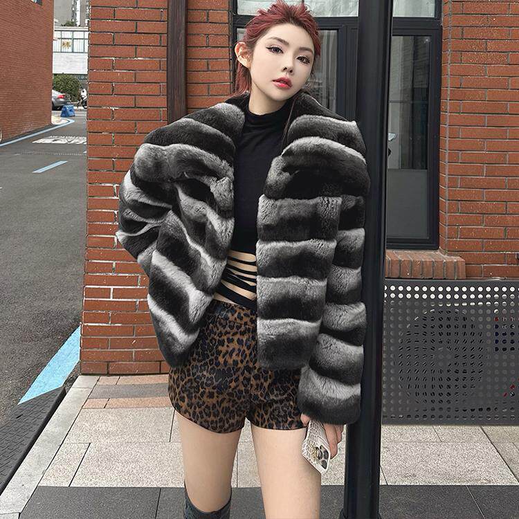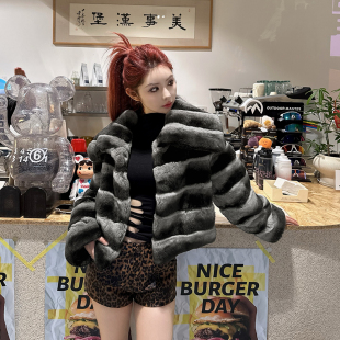 进口雷克斯獭兔毛短款 2025新款 龙猫色皮草外套女冬 银河旷野 茉萱