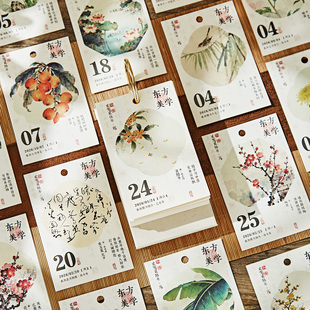 2026年新款 古诗词日历诗画台历复古中国风高颜值桌面创意摆件记事计划本翻页倒计时年历商务手撕日历定制logo