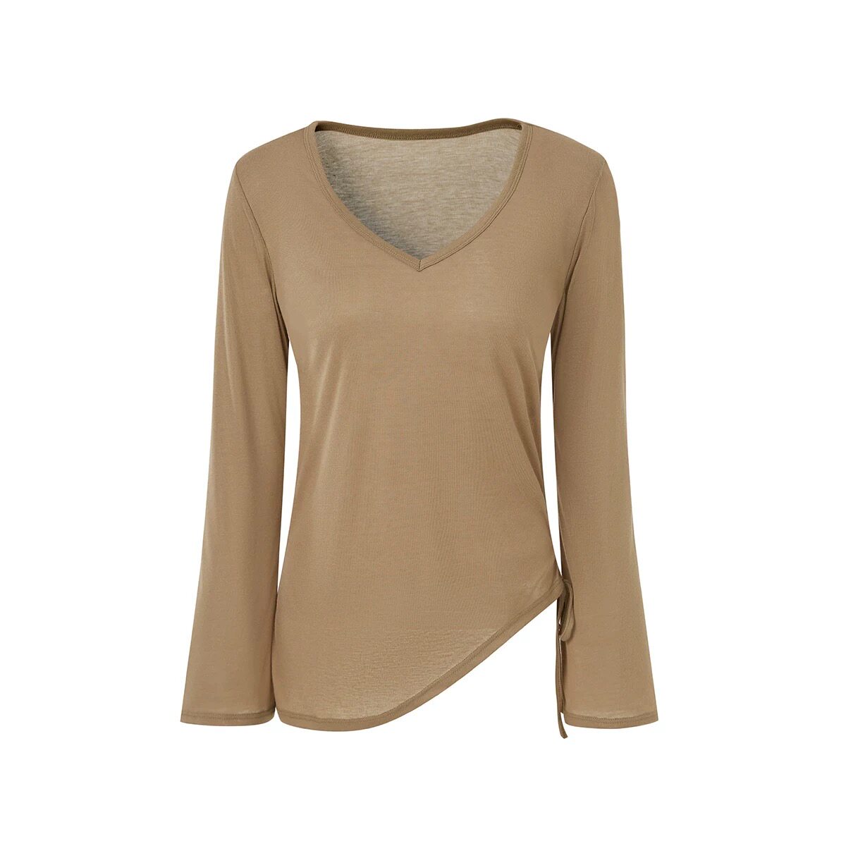 遮臀女褶皱抽绳t恤宽松休闲秋季 长袖 健身瑜伽服 瑜伽罩衫 2026新品