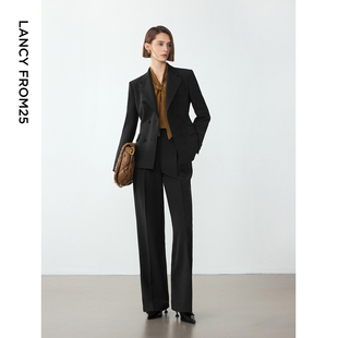 黑色职业西装 羊毛气质法式 朗姿2024冬新款 外套高级感正 朗姿奥莱