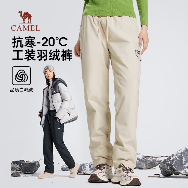 工装 白鸭绒保暖防寒防泼水直筒休闲裤 羽绒裤 新款 2025冬季 骆驼女装