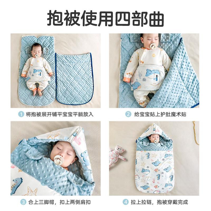 婴儿睡袋秋冬厚款 防惊跳安抚宝宝豆豆睡袋抱被两用新生儿防踢被子